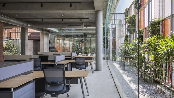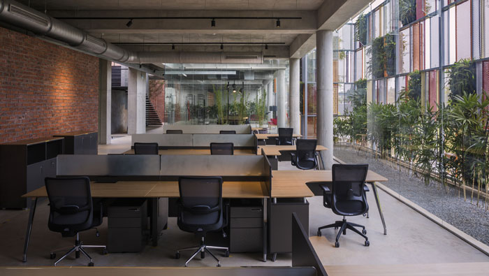 本次工廠辦公大樓辦公室裝修設計效果圖講解到此結束,設計師在辦公室設計中,以現(xiàn)場環(huán)境保持一致為前提,目的就是打造一個融合與廠房的辦公樓,而不是一個獨立的裝飾。