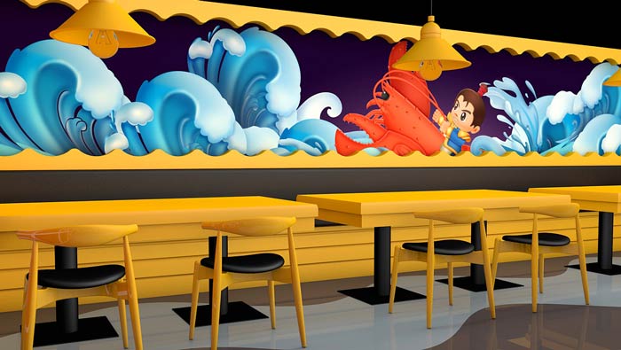 小龍蝦主題餐廳墻繪裝修設計效果圖