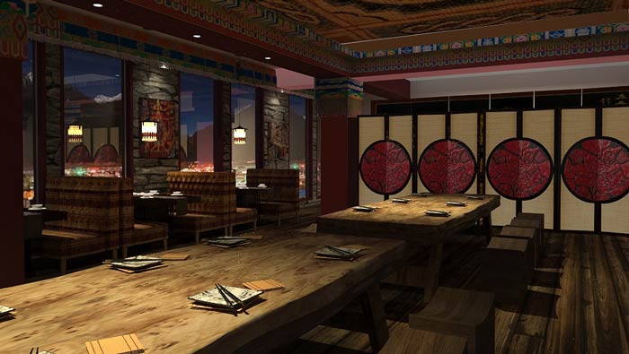 本次為藏式主題餐廳裝修設計方案,業主十分向往藏式風格獨特且優美的,設計形式與設計風格,業主希望空間可以與雪域高原,壯麗的自然景觀一樣渾然一體,給人以古樸、神奇、粗獷之美感,以此形成餐廳獨有且鮮明的設計特點,空間設計風格形式多樣,富于變化,內容豐富。